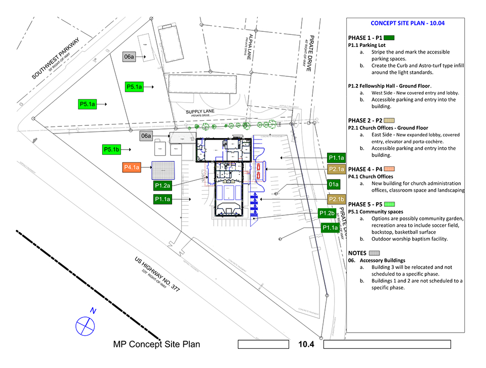 Phase 1: fellowship hall, children’s area, parking lot, life safety plan, sanctuary lighting and sound, develop a master plan.